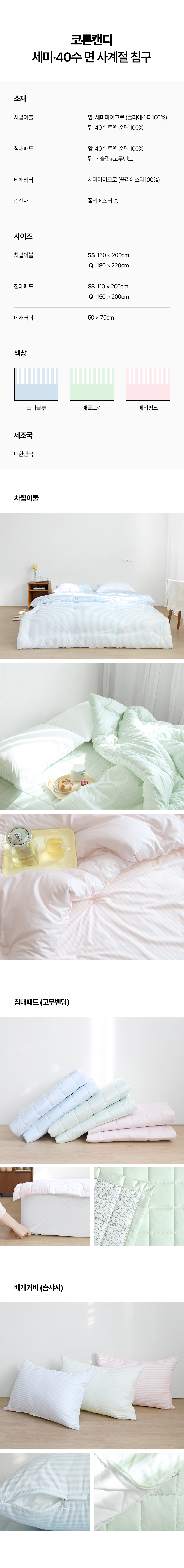 HOME > 계절별 > 사계절 > 코튼캔디 먼지없는 세미 40수 트윌면 침구 3colors