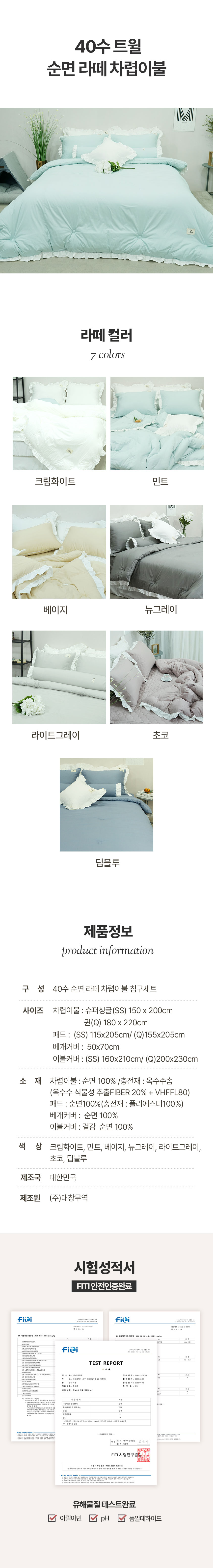 라떼 40수 트윌 순면 침구 7colors